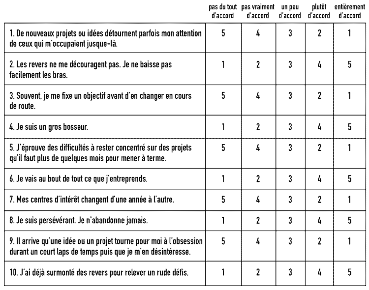 Pour vous aider à vous situer, l’autrice partage son propre barème. Alors, de 1 à 5, jusqu’où votre niaque peut vous emmener ? Comment la développer ? Comment mixer efficacement pugnacité, persévérance, volonté et motivation pour faire éclore ses projets ? Angela Duckworth nous donne dans “L’art de la niaque” les clés pour trouver le juste équilibre entre passion et travail.