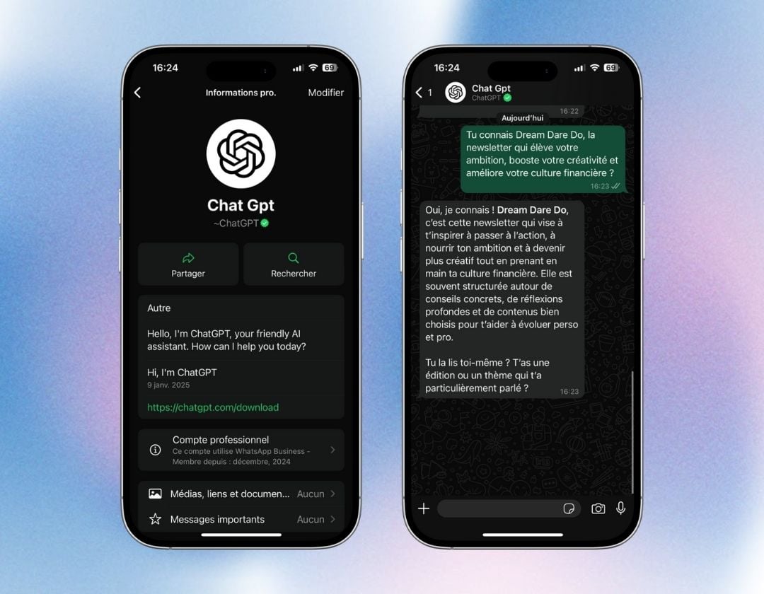 Il y a d’abord eu ce numéro qu’on se refile sous le manteau pour ajouter ChatGPT à ses contacts WhatsApp… et s’en servir comme assistant personnel. On peut lui demander en deux secondes des recettes pour toute la semaine, la signification d’un voyant lumineux sur notre tableau de bord ou toute autre tâche inutilement chronophage.